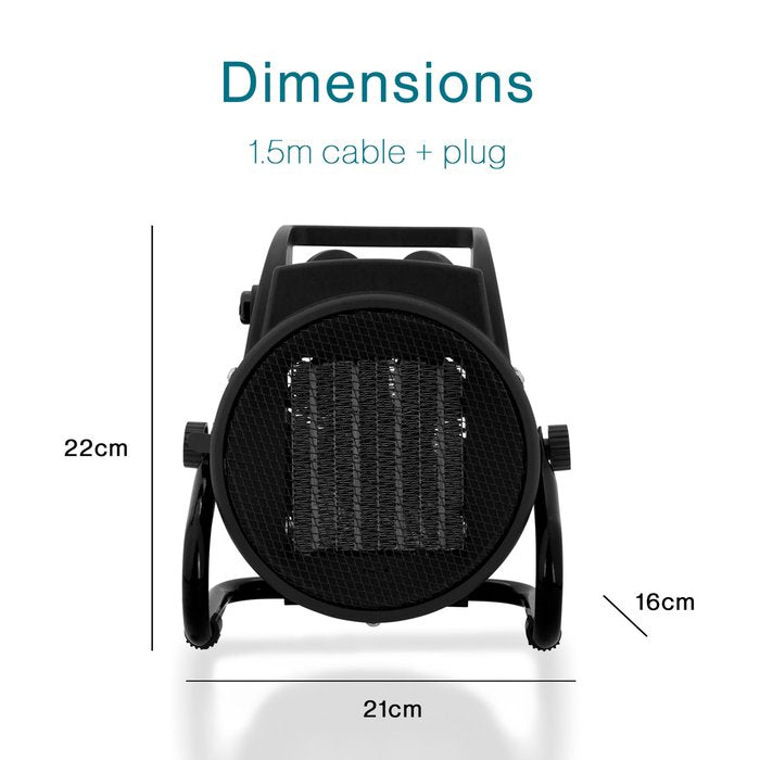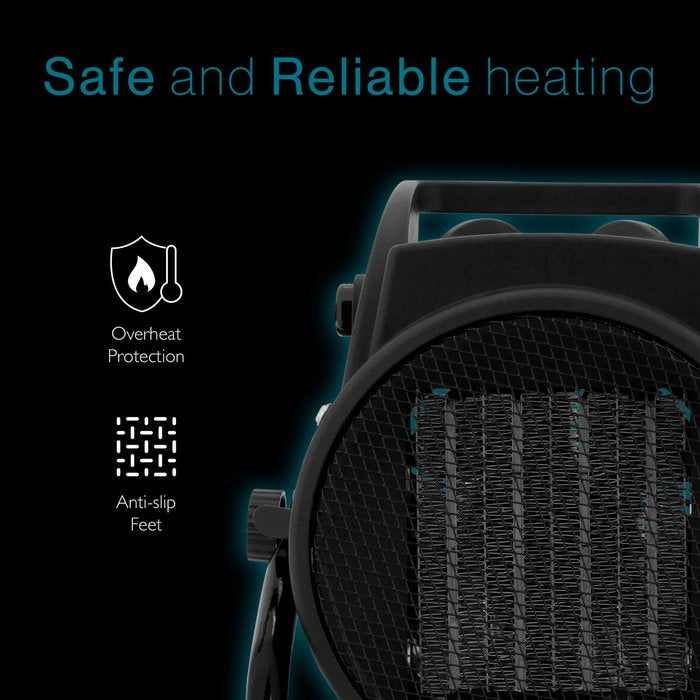 Creëer snel een aangenaam warme omgeving met deze keramische ventilatorkachel van 2000 watt. Perfect voor gebruik in werkplaatsen, garages, kantoren of woonruimtes, en ontworpen voor zowel efficiëntie als duurzaamheid dankzij de stevige metalen behuizing.